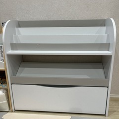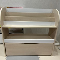 中段は写真のようにケースを入れるとおもちゃ入れになり、下段は引き出しになっているので、絵本だけでなくおもちゃもたくさん収納できます。