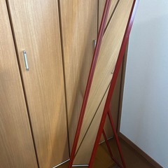ニトリで買った全身鏡で、落ち着いた赤色です。