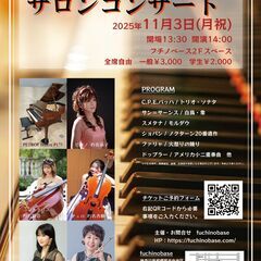 ピアノ・低音弦楽器・フルートでの、様々な形のアンサンブルをお楽しみください。