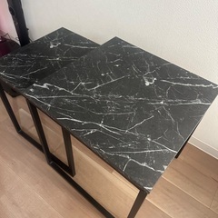 大理石風天板&金属フレームのモダンな2段テーブルセット