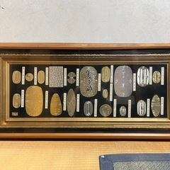 江戸時代に流通した貨幣である大判や小判のレプリカを額装したものです。