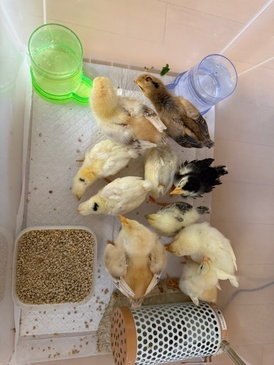 ◆性格や特徴産まれて1週間位です。みんな仲良く過ごしています。◆健康状態餌食い良好です。◆その他写真の中の大きめの4羽が、天草大王のヒヨコです。性別不明です。よろしくお願いします。