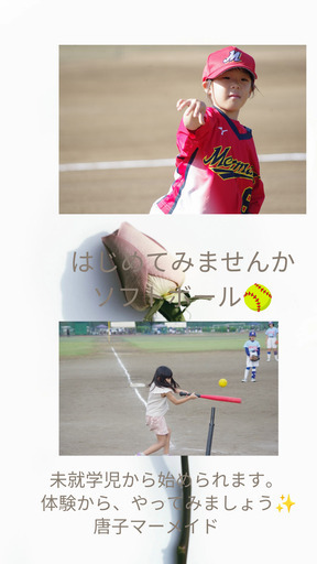 東松山市スポーツ少年団の唐子マーメイドです。ソフトボールの体験をしてみませんか?初心者の方も楽しめますのでお気軽にお越しください。思いっきり外で体を動かして、気持ちリフレシュしましょう。細かいルールは気にせず、ボールを思いっきり投げる、打つ、これだけです。未就学児から体験できます。親子一緒にどうですか?詳しいことはチームのHP、インスタ、ユーチューブでご覧いただけます。お待ちしています。💛