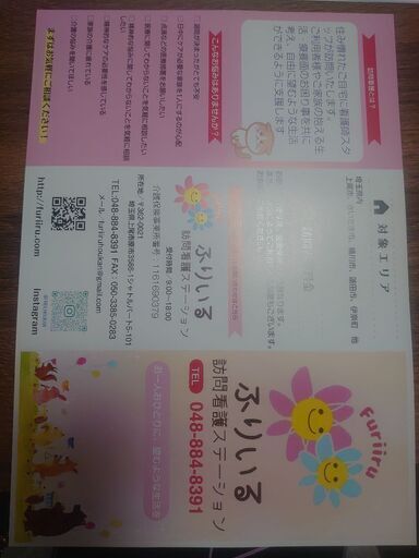 ふりいる訪問看護ステーションこんなお悩みはありませんか?退院が決まったがとても不安日中にケアが必要な家族を1人にするのが心配点滴などの医療をお願いしたい医療に関してわからないことを相談したい精神的な悩みを相談したい精神的なケアを必要としている対象エリア上尾市、さいたま市、桶川市、蓮田市伊奈町