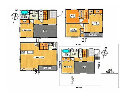 ■接道状況:一方 ( 南東 4m 公道 間口9.1m )