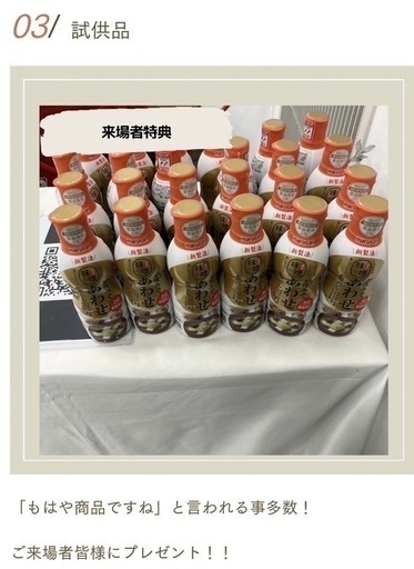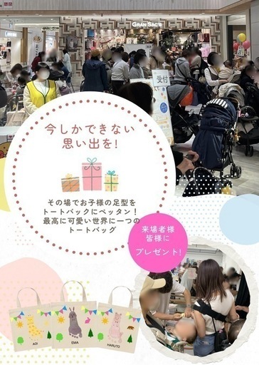 誰かが必ず当たる…!なんと1等1万円のAmazonギフト券!スタンプラリー抽選会開催!2等 5千円相当の子ども用カタログギフト 3等 3千円相当の各会場によって毎回変わるお楽しみ 4等 千円相当のお好きな商品1つが選べます 5等 お菓子すくいどり ハズレなし!!※事前予約で1等当選確率3倍になりますさらに!ママの嬉しいポイントは他にも5つ①最高に可愛い思い出「足形アート」②もはや商品!?来場者皆様に試供品のプレゼント③おこさらまんちのSDGs「ぶつぶつ交換会」④損しないように!「おもちゃお試しコーナー」⑤季節に合わせたお昼寝フォトスポット①最高に可愛い思い出「足形アート」その場でお子さまの足にインクを塗って、その足をトートバッグにペッタン!その足形に、目や鼻をかいて、キリンorウサギorクマにしちゃいます。さらに、数種類のスタンプを用意しているので、ご自身で背景の飾り付けができます!お子さまのお足形を使った世界に一つだけの可愛いトートバックを来場者皆様にプレゼント♪※スタンプラリーが必要となります②もはや商品!?来場者皆様に試供品のプレゼントおこさらまんちの活動に賛同してくれた企業様が来場される皆様のために、プレゼントを用意してくれました。「これもはや商品じゃん!」と言われること多数!来場者皆さまへお土産をご用意しております。※試供品は会場によって異なります。 詳しくは公式LINEよりお問い合わせ下さい。③おこさらまんちのSDGs「ぶつぶつ交換会」もう遊ばなくなったおもちゃや、着なくなった服など不要なものをお譲りください。必要としている人が必ずいるのでお友達のものとして生まれ変わります。持ってきてくれた品数分、お持ち帰りいただけます。※事前予約していただく事で何も持ってこなくても1点お持ち帰りいただけます④損しないように!「おもちゃお試しコーナー」買ったのにすぐに飽きてしまった、壊れてしまったなど、損しないように1万円前後するようなよく見るおもちゃをお試しいただけます。定番おもちゃを40種類以上集めたのでちょうど気になっていたものがお試しできるかもしれません♪⑤お子様一人につき2分間撮り放題!「お昼寝アート」※親御様の携帯でご自身で撮って頂きます。※衣装は用意しておりませんのでご了承下さい。事前予約は、お手間をかけるので本来したくないのですが人数が把握できないと用意する商品の数がわからなくなるため、お渡しする商品が足りない!なんてことがあり得てしまう、そこで、事前予約いただいた方へ三大特典を用意しました。・1等当選確率3倍!・ぶつぶつ交換会1品!・マルコメ様提供液体味噌!ご予約はこちら公式LINEよりお願いします。 https://lin.ee/zQKGVUB※各時間で予約数に上限があります。 ご希望の時間帯がお取りできないこともありますのでお了承下さい。