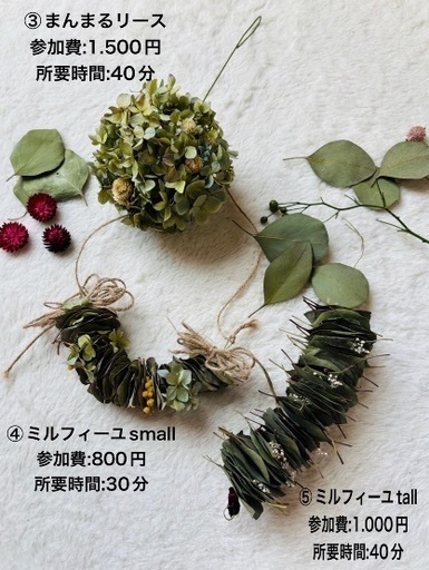 🔴お知らせ🔴ふじみ野市産業まつり出店日時:11/3(月)9:30〜15:00場所:福岡中央公園(テントNO.97)ハワイアンレイまんまるリースとミルフィーユワークショップ@leimelia2🌺ハワイアンレイ🌺kuiスタイル(針と糸で作っていく手法)①レイ(カーネーション) 参加費2.000円 所要時間:30分②髪飾りヘアコーム(カーネーション・ドラセナ) 参加費:1.000円 所要時間:20分🩷初めての方も作りやすい手法となっております@newmoonflower8🌿まんまるリースとミルフィーユ🌿③まんまるリース 参加費:1500円 所要時間:40分④ミルフィーユsmall 参加費:800円 所要時間:30分⑤ミルフィーユtall 参加費:1000円 所要時間:40分※仕入により花材変更あり 画像はイメージとなります◉ハワイアンファブリック等他、物販ありご不明点等ございましたらお気軽にお問合せください🙇♀️