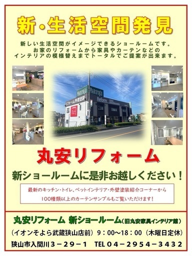 狭山市、丸安リフォームさんとのイベントです。ショールーム内覧会に是非お越しください(*´︶`*)ノ「バスボム作り」とマジック🎩✨お楽しみ下さい(*˘︶˘*).。.:*♡