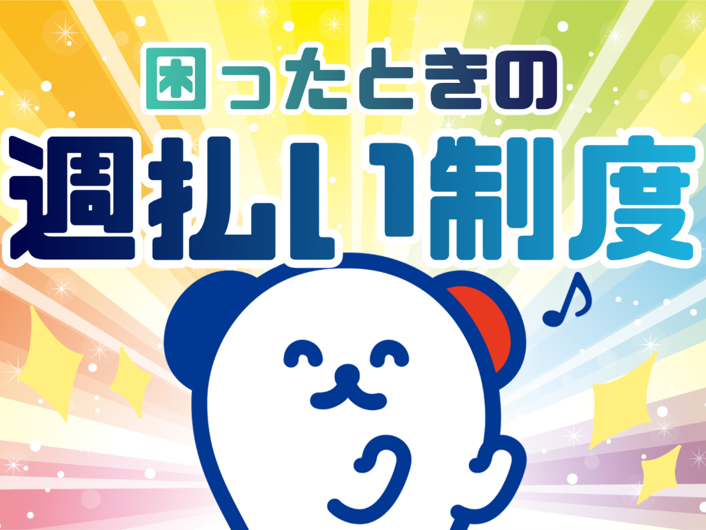 社内割引あり、交通費規定内支給、経験者・有資格者歓迎、駅チカ・駅ナカ、週払いOK、日払いOK、車通勤OK、給与前払い制度あり