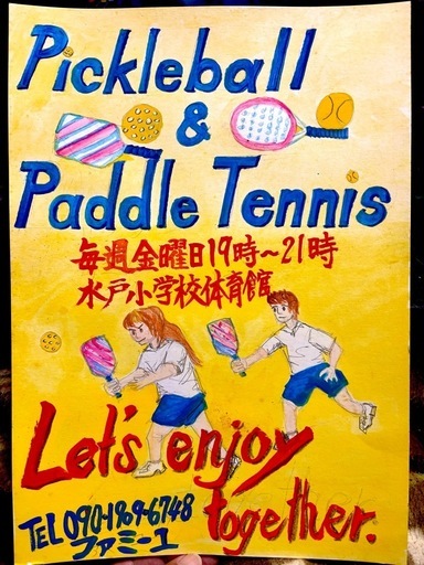アメリカ東海岸で人気のピックルボールや西海岸で人気のパドルテニスをやっています。仲間も10代〜70代の16人ぐらいで楽しんでいます。一緒にやってみませんか?毎週金曜日の夜7時〜9時湖南市立水戸小学校の体育館ビジター代200円と体育館シューズで🆗体育館側の駐車場🅿️が7時に開きます雨でも🆗、夜でも🆗、紫外線も気にせず🆗楽しい時間を共有しましょう待ってます