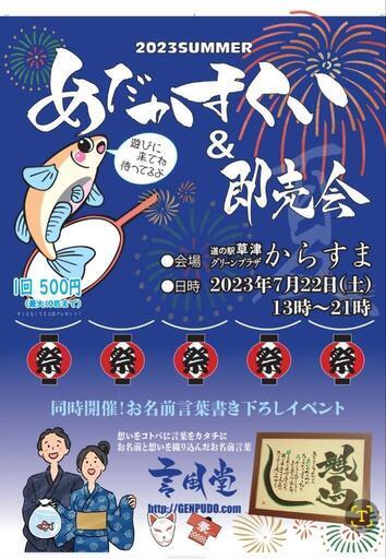 今回は、7/22の土曜日13:00~21:00までやりますー近くでお祭りがあり20:30頃まで花火が上がるらしいですよー花火みながらメダカ見て癒されに来てくださいめだかすくいと即売会さらに今回は言風堂さんが、お名前言葉の出店もしてくれはりますー是非遊びにお越しください