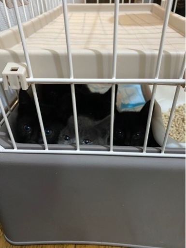 ◆性格や特徴生後1ヶ月くらいの黒猫6匹 グレー1匹🐾ノラちゃんの子、7匹兄弟です😸6月11日保護しました。◆健康状態猫風邪の治療中(点眼)フロントライン済んでます。里親様でワクチン、避妊手術をお願いします!食欲旺盛!いいウンチしてます!トイレもちゃんとできます😊◆その他ノラちゃんの子ども、7匹兄弟を保護しました。ママは鳴きなから子ども達を探しています。ごめんね😢必ず幸せにするから‼️ママはTNRするしかありません。。。黒猫ちゃんは懐こく、ゴロゴロさんになります😊終生家族の一員として、愛情を注いでくださる方!よろしくお願いします😊写真は随時更新しますが、真っ黒で顔がわかりづらいです💦クロちゃんのオス希望!のように連絡いただけましたら、選んでいただけるよう、写真を送らせてもらいます。飼い主不在確認済みです。問い合わせお待ちしています🙇♀️