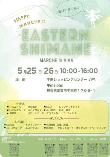 5月25日(土)、26日(日) 10:00〜16:00出雲市 平田ショッピングセンターViVAフードコート付近にて開催‼ハンドメイド、ドライフラワー、風水、タロットカード、服、置物、エステサロン募集は定員に達しましたので締め切りました。ありがとうございました。