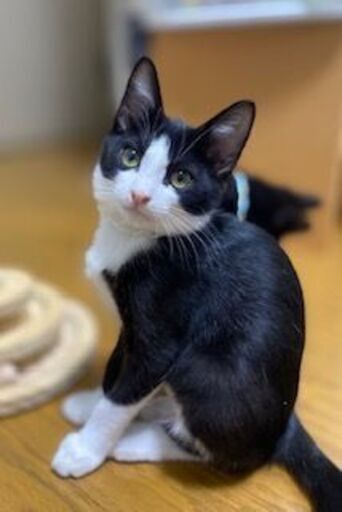 ◆性格や特徴山間地の一軒家の庭で野良猫にエサをやっており、近隣からの苦情でTNRを行いました。(捕まえて、手術して元の生息地に戻しこれ以上増えないようにして一代限りの命を許して守る取り組み)その際、衰弱したこの仔猫2匹を見つけ保護しました。餌やりさんと近隣住民に聞き取りを行い、野良猫であることを確認しましたので、里親募集の運びとなりました。人慣れはある程度できておりましたので、トレーニング後すぐに人間大好き甘えん坊のニャンコになりました。猫じゃらしで遊ぶのもだいすきなわんぱく甘えん坊の小太郎です。◆健康状態保護して動物病院で健康チェックを行いました。血液検査はエイズ・白血病ともに陰性、検便では通常範囲の虫がいましたので、ノミと共に駆除いたしました。保護当時は猫風邪をひいておりましたが、薬を飲み治りました。現在は健康状態は良好です。◆その他◆譲渡の流れ◆まずは伊豆の国市にお見合いに来ていただきます。双方に問題が無ければ、2週間のトライアルという形で、私がご希望者様のお宅へ猫ちゃんをお連れします。その際にケージの設置場所や脱走の危険個所が無いかなど確認をさせていただきます。まずはケージ飼いからお願いします。ケージやトイレが無い場合には貸し出しという形でこちらからお持ちします。2週間のトライアル期間を経て、問題が無ければ契約書を交わして正式譲渡となります。◆里親の条件◆①完全室内飼い②去勢避妊手術必須(譲渡時期によっては、こちらで手術を済ませているかもしてません)③60歳以上の希望者はリレーで継続飼養できる方の承諾が必要です④喫煙者不可⑤生涯家族に一員としてたっぷりの愛情を注ぎ育てる⑥譲渡地域範囲は静岡県東部、神奈川県西部、山梨県南部です5枚目の写真の通り、この子と黒猫ちゃんの兄弟です。仲良しなので可能でしたら2匹一緒に居させてあげたいです。