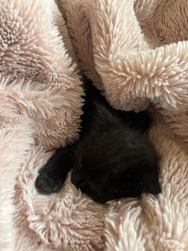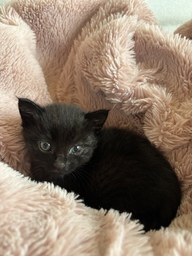 ◆性格や特徴生後1ヶ月ちょっとの黒猫女の子です。1人で倉庫の隅に居るところを見つけました。甘えん坊の泣き虫さんです。◆健康状態元気です。発見時左目が目やにで塞がっていましたが、お風呂に入れて綺麗にして目薬さしています。念の為休み明けに病院連れていこうと思っています。◆その他まだまだママが恋しいようで、今うちに居る保護猫ママが自分の子と一緒に育ててくれています。離乳期なので、離乳食始めています。自力で排泄も確認したのでトイレトレーニングもこれからしていきます。手が掛かる時期ですが、すぐの引き渡し望まれる方にはすぐ渡せる大きさではあります。可愛がってくださる方よろしくお願いします。