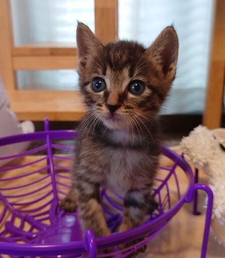 ◆性格や特徴個人で猫の保護活動をしています。(野良猫の子で飼い主さんがいないことは確認済)TNRの現場で産まれた5兄妹の中の1匹です。民家の物置で産まれしばらくは母猫が育てていたのですが、ある日母猫が姿を消してしまいました。9/8に生後1週間くらいで保護し、人工哺乳で育てました。キジトラ柄の女の子。おしっぽは幸運のカギしっぽ!人が育てたのでとても甘えん坊です。現在(2025.10.5)生後1ヶ月くらい。まだ小さいので生後2ヶ月を過ぎ最初のワクチンを打ってからのお渡しになります。◆健康状態ノミダニ駆虫済み便検査異常なし今(2025.10.5現在)離乳食に切り替え中です。食欲もとてもあり元気です!◆その他静岡県浜松市からの募集になります。静岡県西部の方希望。まずは、お見合いに見えていただき、直接お話しをさせていただきます。成立した場合は、後日ご自宅まで直接お届け致します。兄妹で募集しております。兄妹複数匹でお迎えしていただける方を優先させていただきます。子猫の譲渡に関する条件です。最後までお読みいただき、ご検討ください。●完全室内飼い●避妊去勢手術の実施●ワクチン等の健康管理●終生飼養●脱走防止対策以上を必ずお約束いただける方。尚、●未成年の方●学生の方●後見人のいない60歳以上の方のご応募はご遠慮ください。●一人暮らしの方●未婚のカップルの方はご相談ください。以下のアンケートにお答えいただき、メッセージをお願いします。◆猫の飼育経験◆同居のペットの有無◆お住まい(1戸建て持家、マンション、賃貸住宅の場合はペット可が規約等に明記されていることが条件です)◆お住いの地域(何県何市までお願いします)◆家族構成と年齢層◆猫のお留守番時間◆ご職業◆猫をお迎えしたい理由