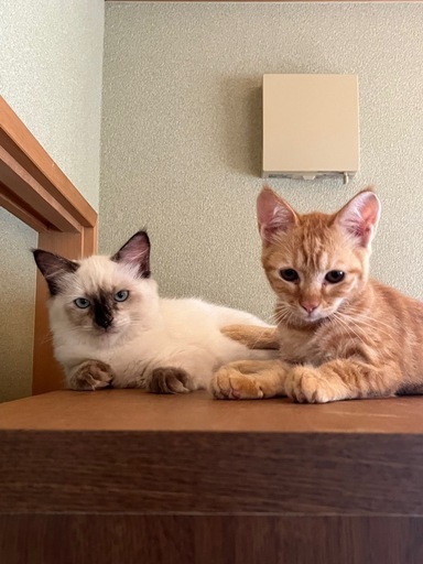 ◆性格や特徴シャムっぽい子は女の子で少し人見知り茶トラの子は男の子で大人しい感じです。◆健康状態2匹とも健康です。◆その他1.野良猫のお母さんから生まれた子猫達です。2.二匹とも去勢とワクチンは行っていないため譲渡後にお願いしたいです。3.譲渡の際はお手数ですが引き取りに来て頂きたいです。4.トライアルは行っておりません。5.先住猫がいない方を優先させて頂きたいと思っております。