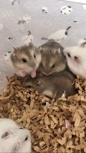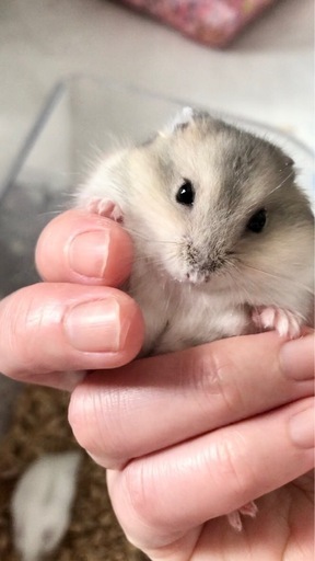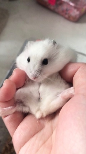 ◆性格や特徴2月17日生まれのジャンガリアンハムスターブルーサファイア2匹(♂2匹)とスノーホワイト(♂1匹)と、1月生まれのジャンガリアンハムスターのスノーホワイト(♂1匹)の里親さんになっていただける方の募集です。2月生まれの子達は父親ブルーサファイア×母親スノーホワイト1月生まれの子は父親ブルーサファイア×母親パールホワイト性格はおっとりしていて食いしん坊な子が多いです。ややぽっちゃりでなんでもよく食べます。威嚇等無く比較的人馴れしているので、飼育しやすい子達だと思います(*^^*)サファイアは少し薄めのカラーになります。写真は3月27日撮影。日々大きく成長しています。◆健康状態食欲旺盛で毛並みも良く元気です。病歴、近親交配等はありません。◆その他生後1ヶ月を過ぎているので直ぐにでもお渡し可能です。早い方から順番に選んでいただきたいと思います。写真以外の子も居ますので、ご希望のカラー等教えていただければ他の子もお渡し可能です。近隣まで取りに来ていただける方、餌や飼育ケージ等飼育に必要な物を全て揃えていただける方、虐待や餌にする等をせず愛情を持って最期まで可愛がっていただける方にお譲りしたいと思っております。讓渡の際は飼育ケージ若しくは移動用ケージ等ご持参ください。その他何かご質問等ありましたらご連絡下さい。よろしくお願い致します。