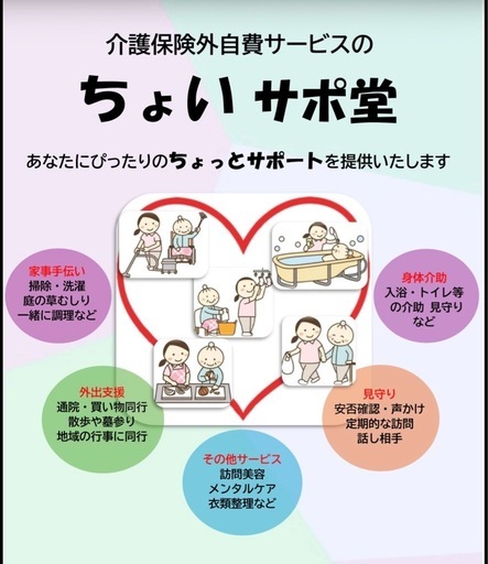 はじめまして^ ^こちらの投稿をご覧いただきありがとうございます😊 【 出張・訪問美容サービス ↓ 】※ 疾病・その他の理由により 美容所に行く事が困難な方が ご利用の対象となります。 お問い合わせ下さい (保健所登録済み) 🔹ご自宅や介護福祉施設などへ伺います。 ご用意して頂くものは *お客様が座るイス *2畳分のスペース 🔹 キッズカットについて😆お子様は 同じ姿勢でジーっとしてる事は困難です。精一杯 頑張りますが、万が一施術が困難な状況になってしまった場合、中断する事もございます。 予め ご了承下さいm(_ _)m営業日 受付時間 ご利用料金 サービス内容など何でもお気軽にお問い合わせ下さい(*´꒳`*)🔶訪問美容 活動エリア🔶 上三川町にサロンもご用意しております!野木町、小山市、下野市、上三川町詳細は お問い合わせ下さい(*´∀`*)🟩 介護保険外サービス 🟩15分 ¥500〜家事手伝い・買い物代行・掃除・庭の草むしり・衣替えのお手伝い・お話相手などなど 出来る事はお手伝いさせて頂きますのでお困りの事がありましたら まずはお問い合わせ下さいませ(๑・̑◡・̑๑)〈保有資格〉産業心理カウンセラーTA(交流分析)カウンセラー不登校訪問支援カウンセラー米国NLP™️協会認定NLPプラクティショナー訪問介護員2級養成研修課程修了サービス介助士2級美容師免許心よりお待ちしております(*´꒳`*)※最近 勧誘や集客営業のご連絡が増えております。私はただ 真剣にお悩みを抱えている方のお役に立ちたいと思い ジモティでも投稿させて頂いているので そのようなご連絡は承りません。 申し訳ございません