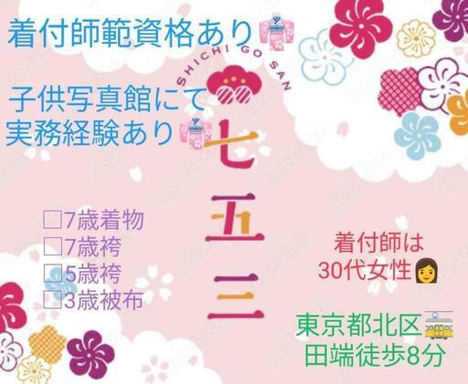 はじめまして!着付師範資格を持っている30代女性です👘!スタジオアリスにて実務経験がありますので、子供の着付に特化しております👶✨空き時間に自宅の一室で着付けを行っております。(我が家にも子供がおりますのでオモチャ豊富)子育て中のママが個人的に空き時間でやっている着付なので、まったりとした雰囲気です。子供ファーストで可能な限りリスエストにはお答えしたいと思っております😌いよいよ七五三シーズンが到来しますね。ご自宅に眠っている着物、親から貰ったけど撮影用はレンタルするし、着せる機会が無い着物、などなど…是非袖を通してみませんか🤗?お持ちの着物をお子さんに着せてお参りや撮影はいかがでしょうか?①着付メニュー□7歳・女の子:着物(作り帯)、着物(手結び帯)□7歳・男の子:袴□5歳・男の子:袴□3歳・男の子:袴、被布□3歳・女の子:被布、着物(作り帯)、着物(手結び帯)□その他:ハーフ成人式、卒業式、上のお子さんの袴や着物、お父さんお母さんの袴・訪問着も受付中!②料金(税込)7歳・3歳着物(手結び帯)→7,000円7歳・3歳着物(作り帯)→6,500円7歳・5歳・3歳男の子袴→4,500円3歳男女被布→3,500円その他1例→大人着付8,000円〜兄弟やお友達、複数名でご利用の場合はお値引可能です!ご相談ください😌□場所:JR田端駅から徒歩10分(タイミングが合えば駅まで+500円で送迎可能)□出張:ご相談可!ご自宅までお伺いも可能です!屋外で洋服の上から着付けも承ります。気になる点は是非1度ご相談ください!柔軟に相談に乗らせていただきます😌