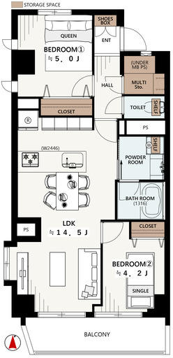 | 間取り/面積 | - 2LDK+M/57.28㎡ |