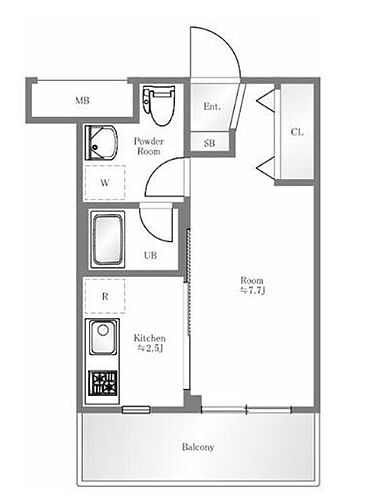 ■間取り詳細:収納、キッチン 2.5帖、洋室 7.7帖