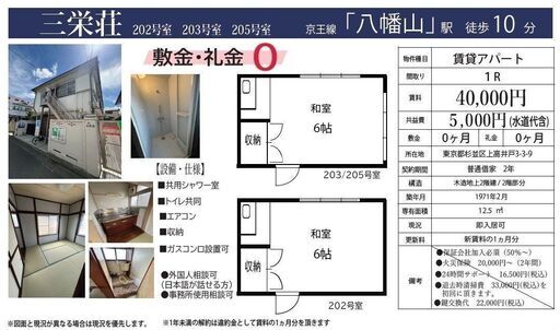 ✅【初期費用完全0円】【三栄荘】【シャワー室あり】【水道代込み】【倉庫・事務所OK】【八幡山】の画像