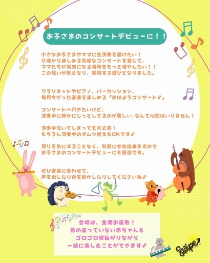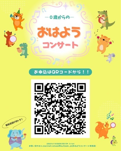 【元気なあいさつで、楽しい一日をスタートしよう🥁✨️】小さなお子さまやママに生演奏を届けたい💌0歳から楽しめる気軽なコンサートを通じて、ママたちが笑顔になる場所をもっと増やしたい‼️この思いが形となり、実現する運びとなりました☺️クラリネットやピアノ、パーカッション…毎月ちがった音楽を楽しめる「おはようコンサート☀️」𝟏𝟎月𝟔日(月)公演は𝟐本のクラリネットとピアノの演奏です!私達はお子さまが思っきり楽しんで、ママ同士の交流ができる温かい空間作りを心がけています。どうぞ安心してご参加ください😊╭━━━━━━━━━━━━━━━━╮お子様のコンサートデビューに🥁✨️╰━v━━━━━━━━━━━━━━╯コンサートへ行きたいけど、演奏中に静かにじっとしてるのが難しい…なんて全く心配はいりません‼️演奏中泣いてしまっても大丈夫☺️もちろん演奏中のオムツ替えもOKです👍会場内には授乳室もございます🍼演奏会場は「コトニア赤羽」𝟏階にお店を構えるいろむすび𝐜𝐚𝐟𝐞☕️ママ自身が「子連れで気軽におでかけできて、居心地のいい場所が作りたい」という想いで運営しているカフェです。コンサートは靴を脱いでくつろげる「座卓スペース」にて行います。首の座っていない赤ちゃんもゴロゴロ寝転がりながら、椅子から落ちる心配もなく安心して一緒に楽しむことができます☺️周りを気にすることなく気軽に参加出来ますので、お子さまのコンサートデビューに最適ですよ✨【~0歳からの~おはようコンサート☀️】◾︎開催日 2025年10月6日(月)◾︎時間 10:00開場/10:15開演(11:00終了予定)◾︎会場 いろむすびcafe📍東京都北区中十条4-17-1コトニア赤羽1階(赤羽駅南改札口から徒歩10分)◾︎参加人数 親子30組さま限定‼️◾︎対象0歳以上のお子さまとご家族(産前のママさんもどうぞ☺️)◾︎参加者特典お子さまにお土産が付きます🍬🍿◾︎参加費・PayPay事前決済親子1組(大人1人/子供1人) 2,000円※1名追加毎に大人(高校生以上)+1,500円子供(中学生以下)+500円・当日現地にて現金払い親子1組(大人1人/子供1人) 2,500円※1名追加毎に大人(高校生以上)+2,000円子供(中学生以下)+500円◾︎お申込 https://docs.google.com/forms/d/194gmVZNqZIdJBd-4TS4genQVLVAV_vkRuypIplA3kMc/viewform?edit_requested=trueまたはQRコードからお申込フォームへアクセス📱お申込フォームへ必要事項をご入力の上、お申込をお願いいたします。/小さなおともだちのみんな‼️一緒に楽しもうね✨\