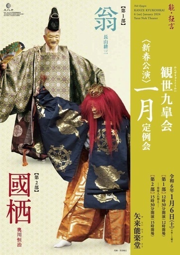 新春 1月6日(土)に観世九皐会 初会では新年に相応しい『翁』よりはじまります。『能にして能にあらず』という言葉のよう神事、祭事のような演目です。天下泰平 国土安穏 五穀豊穣を祈って『翁』はされます。ご来場お待ち申上げます。