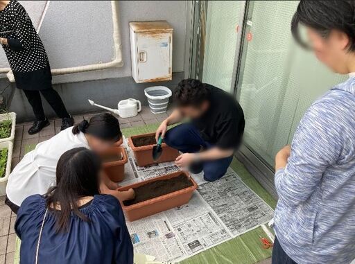 服装:多少汚れても良い服装。ベランダでの作業ですが、土が洋服につく可能性もあります)