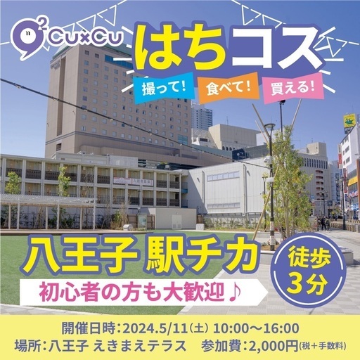 「コスプレで楽しむのはハロウィン期間だけじゃない! コスプレはいつでも、もっと自由に楽しめる♪」街の中心地にある広場、「えきまえテラス」にて初のコスプレイベント開催決定!さらに!地元のキッチンカーグルメを堪能&コスプレ関連フリーマケットと、ハンドメイド出店を同時開催♪コスプレ初心者から、興味がある一般の方まで誰でも気軽に参加できるコスプレイベントとなっております。⚫︎詳細開催日時:5/11(土) 10:00〜16:00開催場所:八王子 えきまえテラス(JR八王子駅・京王八王子駅から徒歩3分以内)受付/準備室:オープンイノベーションフィールド多摩 八王子館受付/準備室 利用可能時間・入り:9:00〜11:00・帰り:15:00〜17:00⚫︎「はちコス」でしか体験できない、3つの楽しさがあります♪①コスプレ撮影&交流会初心者からすでにコスプレが大好きなコスプレイヤー、カメラマンはもちろんのこと、お子様連れのご家族やお友達同士での参加も大歓迎です♪さらに!衣装はアニメ、漫画、ゲームなどのコスプレはもちろんのこと自作の衣装やファッションなども公の場で自由に表現できます。美大やファッション学科の学生さんも、ぜひ参加してください!②キッチンカーグルメ地元で活動するキッチンカーにお越しいただき、写真映えする飲み物からスイーツ、ガッツリ飯まで様々な種類のフードを堪能できます。テーブルやイスも設置していますので、お子様がいても安心♪(台数制限有)せっかく八王子に来たなら、地元のグルメまで楽しんじゃおう!③フリーマーケット&ハンドメイド出店野外開催は初?の、コスプレ&衣装関係のフリーマーケット!もう使用しない衣装関係や、撮影に使えそうなものが家に眠っていませんか?「時間がなくて出品も面倒だし、捨てるのも勿体無い…。」そんな方、今がチャンスです!オリジナルのハンドメイドアクセサリーやアニメ関係の資料、布などのパーツや自作写真集…。関連しそうならなんでもOKです。詳細・参加チケットの購入は公式ページからお買い求めください参加費:・コスプレイヤー/カメラマン 2000円(小学生以下は参加費無料)・マーケット出店参加者 4000円(コスプレ参加費込)公式HP https://www.cucucosplay.com最新情報SNS ・X https://twitter.com/CuCu_cosplay・Instagram https://www.instagram.com/cucu.cosplay/