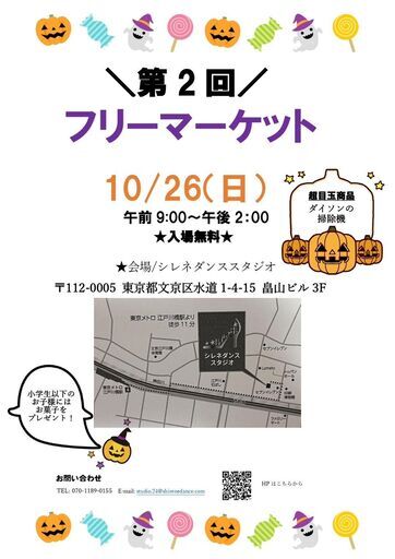 こんにちは!文京区水道にあるダンススタジオ3階で、フリーマーケットを開催します😊前回もたくさんの方に来ていただき、とても賑わいました✨今回も掘り出し物やお得な商品をいろいろございます!🗓 日時:10月26日(日)9:00〜14:00📍 場所:文京区水道1-4-15 畠山ビル3F(江戸川橋駅・飯田橋駅から徒歩圏内)👕 出品予定・レディース服、バッグ・アクセサリー、小物・子供用品、おもちゃなどなど!🍭 小学生以下のお子さまにはお菓子のプレゼントもあります。ご家族やお友達とお気軽に遊びに来てください!当日、皆さまにお会いできるのを楽しみにしています🙌
