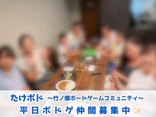 火曜の夜、一杯飲みながら気軽にボードゲームしませんか?🍻🎲「たけボド」がお届けする、新しい“ゆるやかな”夜の集まりです!仕事帰りにふらっと立ち寄って、そこにいる人たちと自然にゲームが始まる…そんな気軽な交流の場に、ぜひ遊びに来てください。✨この会の魅力は、気軽なこと!✨■参加費無料!予約もいりません!(お店でワンドリンク以上ご注文ください。ハッピーアワーでお得です!+お通し代が必要です!)■好きな時間に来て、好きな時間に帰れます!見学も歓迎です🎵(一杯だけ、一戦だけの参加も大歓迎です👍)■初心者さん&お一人でのご参加、心から大歓迎!(主催のあべけんが、簡単なゲームを用意してお待ちしています!)【開催概要】■日時: 火曜日 19:00~24:00(この時間内のお好きな時に、いつでもどうぞ!)■場所: 隠れ家居酒屋 たけのぼり(東武スカイツリーライン 竹ノ塚駅 西口より徒歩3分)■会費: 無料※お店のメニューから、ワンドリンク以上のご注文をお願いいたします😊✨※お通し代が必要です!■その他:お店は通常営業です。貸切ではありませんので、周りのお客様へのご配慮をお願いいたします。🎲遊ぶゲームの例🎲『はぁって言うゲーム』『ボブジテン』『ito』『コヨーテ』など、短時間で終わる軽めのゲームやパーティーゲームが中心です!もちろん、『UNO』や『トランプ』もご用意しています。【ご参加について】予約は不要ですが、「今から行きます!」「今日いますか?」など、このジモティーのメッセージで事前にご連絡いただけると、主催の私がとても喜びます😊✨(もちろん、連絡なしのサプライズ訪問も大歓迎!)火曜の夜、竹ノ塚の“隠れ家”で、一緒にボードゲームで乾杯しましょう!皆様のお越しを心よりお待ちしております。たけボド 〜竹ノ塚ボードゲーム会〜主催:あべけん