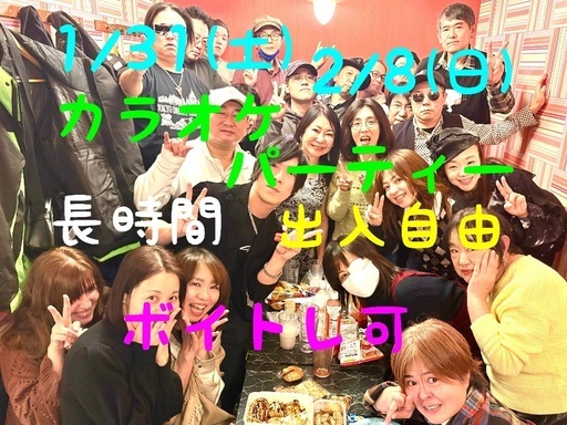 大塚のカラオケボックスにてカラオケパーティーを開催いたします。(通常毎月第二日曜日と第四土曜日に開催)食事アルコールの持ち込み可長時間&出入自由カラオケ前にボイトレを行いますが参加可能ボイトレ11:15〜12:15カラオケ12:30〜20:00参加費ボイトレ:3000円カラオケ:男性2500円、女性2000円※何時に入っても一律料金※ボイトレのみ参加の方はカラオケボックス代の1500円が別途かかります。毎月誕生月の方には第二日曜日にケーキでお祝いをさせていただきます。10日前までに申告していただいた方にはケーキのプレートにお名前を入れさせていただきます。申告がない場合はケーキの用意はございません。初めての方でも参加しやすい雰囲気となっておりますので是非ご参加ください。ボイトレのテーマ1月31日土曜日・ウォームアップ編歌う前や本番で声を出す前の喉や体の準備の仕方などを実践。声を出しやすくしたり喉を痛めない為のメソッドをやらせていただきます。1月8日日曜日・ビブラート編歌でビブラートが出来ると表現の幅が広がります。また音程を早く移動したり、フェイクなどにも応用がききます。ビブラートの練習方法も学べます。ボイトレ講師布施マーサ(日本タレント協会公認講師)場所:カラオケ歌広場 大塚店東京都豊島区北大塚2丁目2番2号ランドマークビル6階電話:03-5394-6400参加費ボイトレ:3000円カラオケ:男性2500円、女性2000円※何時に入っても一律料金※ボイトレのみ参加の方はカラオケボックス代の1500円が別途かかります。その他※部屋番号は受付で布施の名前を出していただければご案内いただけます。※ドリンクはお店のソフトドリンクが飲み放題となっております。※部屋を移動することは可能ですが複数の部屋にカラオケを予約することは禁止です。※カラオケの順番は席順になります。テーブルごとにリモコンを回していきます。※17:00以降遅れて来た方には1曲だけ割り込みで入れていただいた後は席順に回していきますのでよろしくお願い致します。※人数制限がございます。事前に申し込まれている場合は部屋数を増やしやすいのですが当日の申し込みは部屋を増やすことが出来ない場合がございますので参加をお断りする場合もございますので予めご了承ください。※食事、お酒は持ち込み可能です。※基本主催者からお酒、食事の提供はございませんのでご自身で持ち込みをお願い致します。※持ち込んで出たゴミは各自お持ち帰りください。※出入自由です。※当日のキャンセルのみボイトレもカラオケパーティーもキャンセル料が全額かかります。※ボイトレ参加者は極力時間に間に合うようにいらしてください。 ※参加希望の方は必ずご連絡をください。定員を超えたらキャンセル待ちになります。※ カラオケ交流会は出入り自由ですが目安の参加時間もご連絡ください。時間帯ごとの概算人数把握のためです。変更になっても構いません。※参加費はお釣りがないようにぴったりいただけるとありがたいです。※参加者が多い場合は別の部屋も予約することを検討いたします。興味のある方はご連絡をくださいませ♪