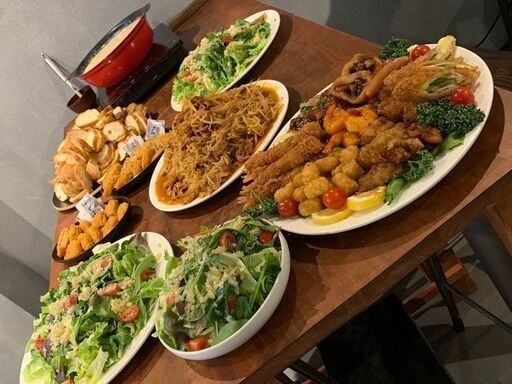 パーティーを彩るのはお酒だけではありません。今までのパーティーで人気のあったメニューが勢揃い。お馴染みの餃子パーティーで大人気の餃子や名物のソーセージに加え、屋台メシで有名な焼きそば、手作りの炒め物ソテーと昔チャームで出していたポップコーンを提供します。人数が多い時はカレーも登場!沢山の品数をおつまみとして楽しんでいただけます。