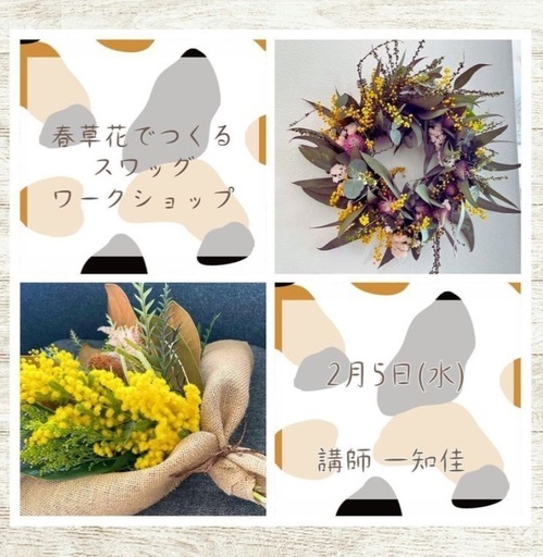 「春草花でつくるスワッグ」ワークショップお知らせです。・少しずつ春の草花が出てきました。ミモザをはじめ、春色の草花を束ねてスワッグを制作します。・春の香りと芽吹きのエネルギーのなかでの植物との触れ合いをお楽しみくださいね♪・*写真はイメージになります当日の仕入れにより花材は変わります◇日時◇ (約90分)2月5(水)11:00東京◇内容◇(長さ約60㎝)◇参加費◇5500円(税込)◇募集人数◇4名様◇場所◇東京:「Zakka&Douce」さん@zakka_douce ◇お願いとキャンセルポリシー◇①お持ち帰り用の袋をお持ちください^^②花材の都合上、3日前からのキャンセルについては100%お代を頂戴しています。→後日、完成品orワーク花材 ご希望の方をお届けいたします^^お会いできるのを楽しみにしています♡◇持ち物◇手ぶらでご来店ください~ WinWin_ww_Project 割引 ~ひとり親家庭で生活されている方、ご本人、お子様障害をお持ちで生活されている方、ご本人、お子様該当される方へお気持ちではありますが作品ご購入時、ワークショップ参加費を少しでもたくさんの方へ癒しをお届けしたい思いより微力ではありますが各10%ずつ割り引きさせて頂きます⟡.*※ひとり親証明確認の出来る書類 障害者証明確認の出来る書類のご提示をお願い致します。~ 利用登録会員割引 ~作品ご購入時、ワークショップ参加費を日頃の感謝を込めましてコチラもお気持ちではありますが10%割り引きさせて頂きます⋆*☆上記割引は該当分併用致します☆※ワークショップのご参加での割引利用は 当日店頭にて差額分を精算させて頂きます。·◇講師◇«一知佳 » @ichika_kanachizu ◇場所◇zakka&hairsalon Douce 店内ワークショップスペース江戸川区南篠崎町3-1-1 メゾンSUGAⅡ 1F都営新宿線瑞江駅南口より徒歩3分03-6638-6050◇ご予約方法◇« Douce » Instagram@zakka_douce プロフィールトップページ記載ホームページのご予約フォームよりお受けしております。 https://reserva.be/douce #アレンジメント #アレンジメントワークショップ #ドライフラワー #花のある暮らし #花のある生活 #花ののあるくらし #アレンジメントフラワー #ミモザ