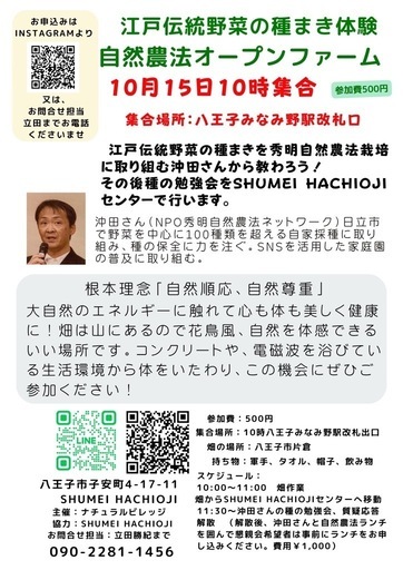 自然農法で自家採種を長年に渡り実施されている沖田さんより、畑でタネの撒き方を教えていただきます。ご参加ください。その後、移動して勉強会を行います。自然農法ランチを希望の方は前もってご連絡ください。宜しくお願い申し上げます