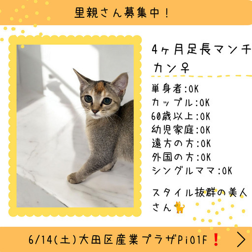 里親募集中!4ヶ月足長マンチカン♀ブラウ... 東京 を見ている人は、こちらの記事も見ています。