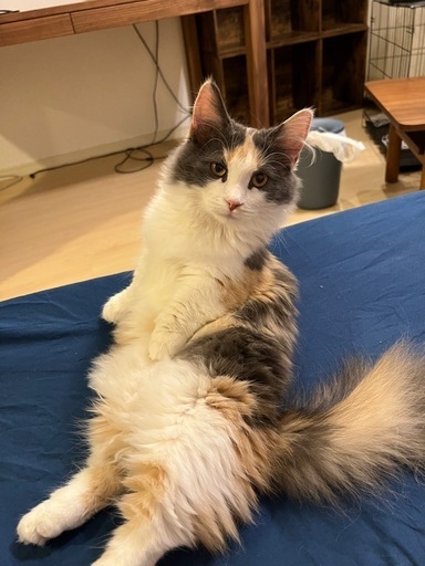 ◆性格や特徴ペットショップで購入し、生後4ヶ月の時から大切に育てていました。ミヌエット(ペルシャとマンチカンのハーフ)で、長毛、短足です。毛色はダイリュートキャリコで、薄い三毛です。他の猫は知らないので断言は出来ませんが、鳴かないし、引っ掻かれた事もなく、本当に優しい子だと思います。飼い始めた翌月からアレルギー(猫アレルギーではなく、猫の毛によるハウスダストアレルギーと診断)と向き合ってきましたが、症状は増す一方で、医師と相談し、段階を経て、手放すことにしました。◆健康状態ワクチン、避妊接種済みです。毎日トイレも出来ており、水もご飯も問題なく摂っています。◆その他なるべく一緒にいてあげられる時間を確保出来て、大切にして下さる方。(付属書類)▪︎血統書▪︎ワクチン接種証明どうぞよろしくお願いします。※補足▪︎早速複数のお問い合わせいただき、ありがとうございます。この子は他の動物(もちろん猫も)とペットショップ以降触れ合わせた事がありません。▪︎問い合わせフォーマットがある事を知らなかったのですが、譲渡後、訪問する意思はありませんし、写真や動画も求めません▪︎県外からのお迎えは、猫の移動ストレスと、お迎えまでに何度かは猫と会っていただきたい観点から、現実的に難しいと考えています※お問い合わせは全て目を通していますが、数が多いため、個別の返信はご容赦くださいませ