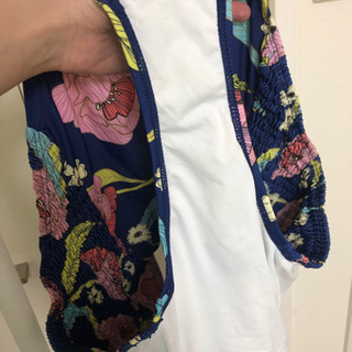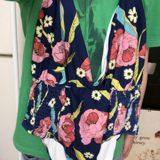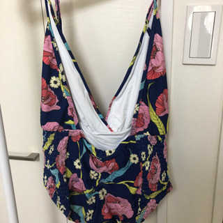 胸元ざっくり!背中はフルオープン!のオトナの水着です。脇はシャーリングのデザイン。生地はしっかりしています。 日本ならラッシュガードの上に着ても良いかもしれません。 色味は写真よりもう少し明るいです。 一回着用していますが、使用感ほぼありません。