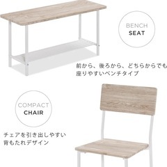色ナチュラル ブランドOSJ サイズ4人用 商品の重量28.8 キログラム スタイル【四角】3点 組み立て式はい 【サイズ】【テーブル】:(約)幅約100×奥行約70×高さ約70cm【ベンチ】:(約)幅約85×奥行約30×高さ約46cm【チェア】幅約44.5×奥行約40×高さ約86(座面高さ:46cm)、 【素材】テーブル:合成樹脂化粧繊維板(PVC)、スチール(フレーム)、粉末塗装(スチール部分) 。 チェア: 合成樹脂化粧繊維板(PVC)脚部:スチール(クロームメッキ塗装仕上げ)。 【カラー】 テーブル:ブラウン/ナチュラル チェア:ブラウン/ナチュラル 【重量】約12kg 【梱包重量】約14.2kg 組立品/完成品: 組立品 【80cm×53cmのテーブルがちょうどいい】お部屋に置いても圧迫感を感じにくいこのサイズ。一人暮らしやカップルにぴったりです。 【角度設計されたシンプルで美しいチェア】シンプルでかつ座りやすさを考慮したデザインにしました。背もたれは角度をつけ、背中にあたる部分は少しカーブさせフィット感を。角度がついて座りやすい設計。ゆるやかなカーブで背中にフィットします。 【木部は優れた機能性と意匠性】天板、椅子の木部は美しい木目と優れた機能性を持ったPVC化粧板。水や汚れに強くさっと拭くだけで綺麗に。ゆるやかな空間を演出する円形のデザイン。 【いつでも気分があがるお洒落な空間に】仲間と一緒に、大切な人と二人で、もちろん一人でも。どんな時も暮らしに馴染むデザインです。 【コンパクトでスタイリッシュなダイニングセット】デザイン性もあってコンパクトなダイニングだから、お部屋に余裕ができてお洒落な空間へ。 天板、椅子の柄部分は優れた機能性を持ったPVC化粧板です。水や汚れに強くさっと拭くだけで綺麗に。 角があたっても痛くない丸みがあるつくり。 【レザー座面】レザー特有のシワの質感まで再現された、弾力性·柔軟性が高いPUレザー生地。柔らかくもちもちとした肌触りと共に見た目の風合いや質感から落ち着いた雰囲気ある空間を演出。撥水性も高いので、食事中に汚れてしまってもサッと拭きとって頂けるお手入れのし易さもポイントです。 急な海外転勤のため、処分しないといけないです。 まだ1年も使っていないものでほぼ新品です。 よろしくお願いします。