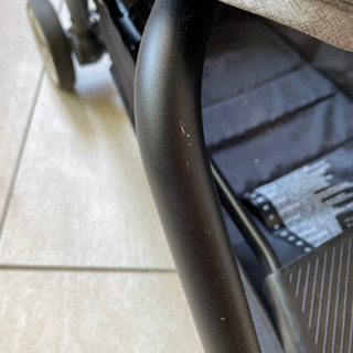 2018年9月に購入して一年ほど使用。スタイリッシュな見た目のベビーカー。 純正のバンパー、レインカバーもあります。 軽量で操作性が良いだけでなく、走行の安定性も抜群。折りたたみもワンタッチ。とにかく使いやすいです。使っていてストレスを感じることがありませんでした。 リコール対象となったホイールはメーカーから新しいパーツを取り寄せ交換済み。 ・色/マンハッタングレー ・対象年齢/6ヶ月〜4才(17kg) ・リクライニング機能/無段階(120〜150°) ・サイズ/使用時:45×85×103cm 折畳時:45×25×53cm 座面高さ:40cm ・重量/5.9kg ・付属品/バンパー、レインカバー、説明書 ・状態/サイドや足廻り等の擦りやすい部分のフレームに掲載画像のような傷あり ■7つの長所 1. 最大限に軽量化したデザイン(本体重量 5.9kg) 2. ワンタッチで小さく折りたたみ&自立収納 3. コンパクトで狭い場所も安心(幅45cm) - 駅の改札や狭い店内の通路も楽々 4. 小回りが利いて動きもスムーズ 5. 押す力が小さくてもタイヤに力を伝えやすくスイスイ走行できる設計 6. コンパクトボディながらしっかりしたフレームの剛性によりグラグラしない 7. すべてのホイールに入っているサスペンションによりでこぼこ道でも快適な乗り心地