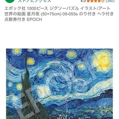 エポック社 1000ピース ジグソーパズル イラスト/アート 世界の絵画 星月夜 (50×75cm) 09-055s のり付き ヘラ付き 点数券付き EPOCH https://amzn.asia/d/gE1X2R6 中古、美品です。Amazonで新品だと2,682円します。 7割ほど完成したものを猫に崩され、やる気が全くなくなってしまったので出品いたします。