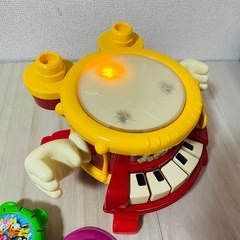 「リズムあそびいっぱい マジカルバンド」です。 6つの楽器(ドラム、マラカス(欠品)、ラッパ(欠品)、タンバリン、シンバル、ピアノ)で遊ぶことができるおもちゃです。 遊びながら自然にリズム感が養われることを目的としています。 対象年齢は1歳からです。 電池は単3形アルカリ乾電池を3本使用します 子どもが使用したused品にご理解いただける方よろしくお願いします。