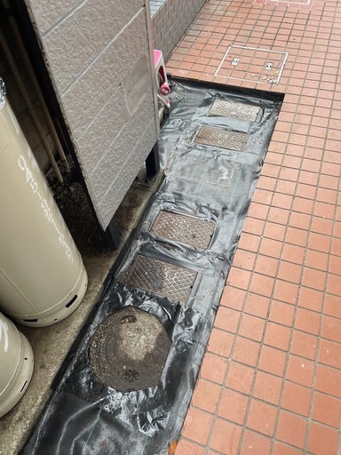 施工 シート敷設・ピン打ち・テープ貼りまたはコーキング処理