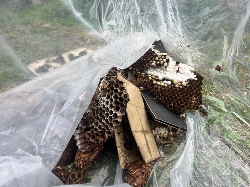 この画像は、オオスズメバチの駆除を行った際のものです。巣の大きさは 約50cm もありました!当社では、オオスズメバチのほか スズメバチ・アシナガバチ の駆除も承っております。ご相談はもちろん、即日対応 も可能です😊ハチの巣を見つけたら、危険ですので絶対にご自身で対処せず、まずはご連絡ください!ご自身、ご家族、そしてお子様の命を守るために、早めのご相談をおすすめします‼️