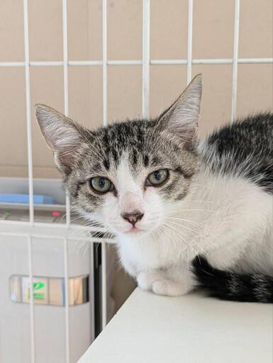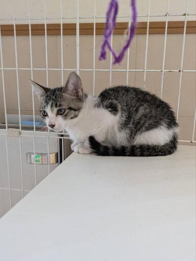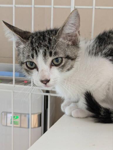 ◆性格や特徴まだ怖がりですがだいぶ慣れました。他の猫とも甘えて上手に過ごしています。きじしろの男の子。生後3ヶ月。◆健康状態ワクチン済み・ウィルス検査(陰性保護してすぐの結果)・駆虫済み・マイクロチップ装着済み・ノミダニ駆除済み◆その他飼い主不在は確認済み。TNR 現場にて保護しました。母猫は手術済み。外には絶対に出さないで完全室内飼育をお願いしています。網戸ロックなどですべての窓に脱走防止対策もお願いしています。生後4ヶ月での去勢手術も必ずお願いしています。譲渡費用はもうすぐワクチン2回目を打ちますので20,000円です。領収書との引き換えになります。お見合いは松江市のボランティアさんのお宅でとなります。譲渡が決まりましたら、こちらからご自宅までお届けをさせて頂いています。譲渡誓約書へのサインもお願いしています。どうぞよろしくお願いいたします。