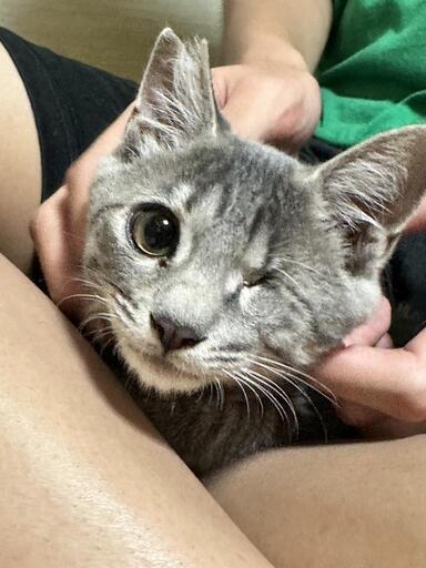 ◆性格や特徴生後4ヶ月の男の子です。まだ怖がりのところはありますが、だいぶ慣れてきました。左目が猫風邪の為ダメになっていて摘出手術を受けました。その時に一緒に去勢手術も済ませました。◆健康状態ワクチン二回、マイクロチップ装着、ウィルス検査(保護して2週間後の結果・陰性)、駆虫、ノミダニ駆除、去勢手術済み。(リリース予定でしたので耳カットがあります。)◆その他TNR 現場で捕獲されました。飼い主不在は確認済み。当初はリリース予定でしたので眼摘出手術、去勢手術をして、耳カットもしました。リリースが諸事情で遅くなり、その後保護となりました。外には絶対に出さないで、完全室内飼育をお願いしています。網戸ロックなどですべての窓に脱走防止対策もお願いしています。譲渡費用はワクチン二回ですと20,000円となります。領収書との引き換えになります。どうぞよろしくお願いいたします。