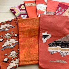 多様な模様とテクスチャーの赤系名古屋帯セット。 未使用品1点を含む14点セット まとめ売り ※バラ売り不可 サイズ等の質問にはお答えできませんので、予めご了承ください。 帯としての使用はもちろん、リメイク素材としていかがでしょうか! プロフィール欄もご確認下さい。