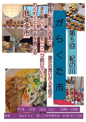 古道具や古本、古着などリサイクル品メインの手作りアクセサリー、陶芸作品の即売会です。美味しいフード、ドリンクも販売。ここでしか買えないジャムもあります。販売参加されたい方も受付中。